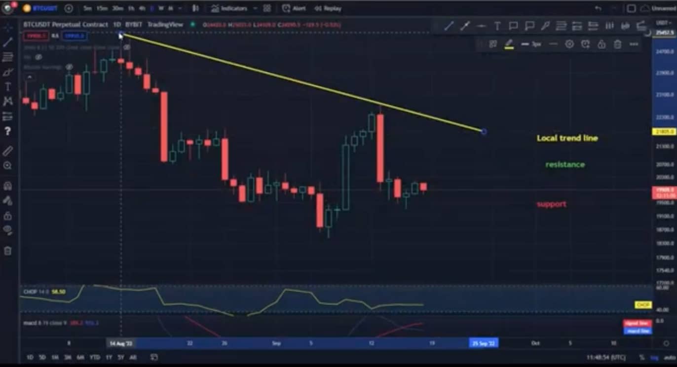 Let’s start with the designation of the support line as you can see the first support in the near future is $ 19,928, if the support breaks down, the next support is $ 18,461.