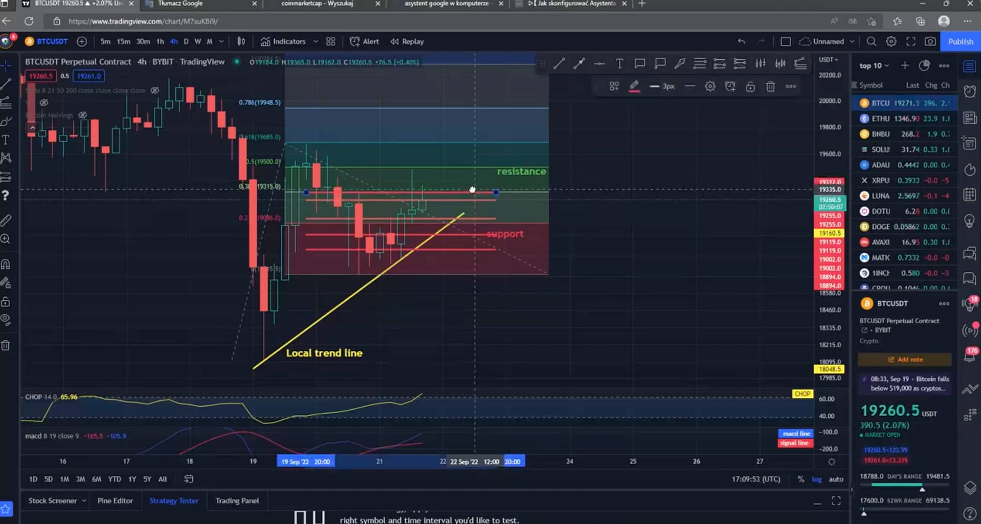 Let’s start with the designation of the support line and as you can see the first support in the near future is $ 19,255, if the support breaks down, the next support is $ 19,119, $ 19,002 and $ 18,894.