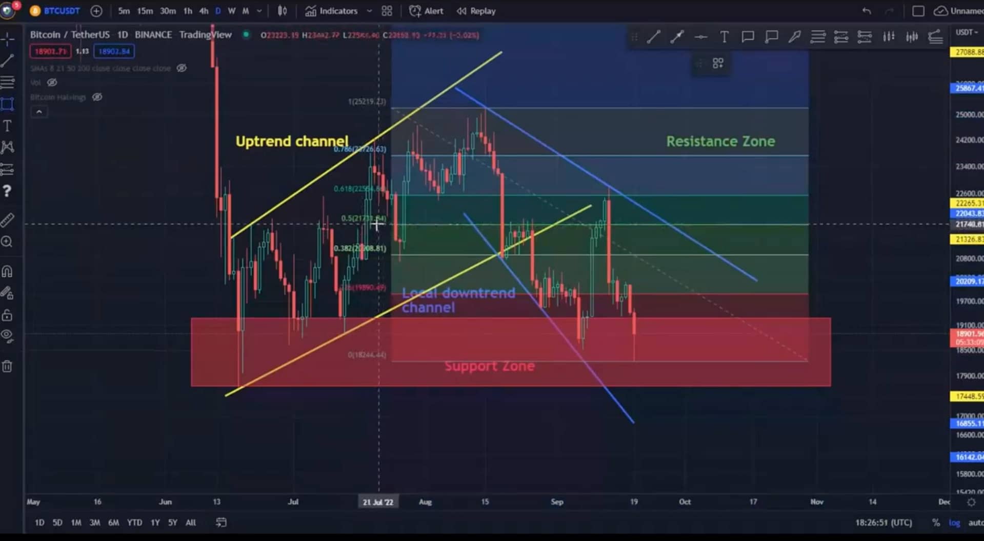 Now let’s move on to the resistance bitcoin’s price must overcome if it starts to rise. We have a support zone from $ 20,888 to $ 22,043 ahead of us.