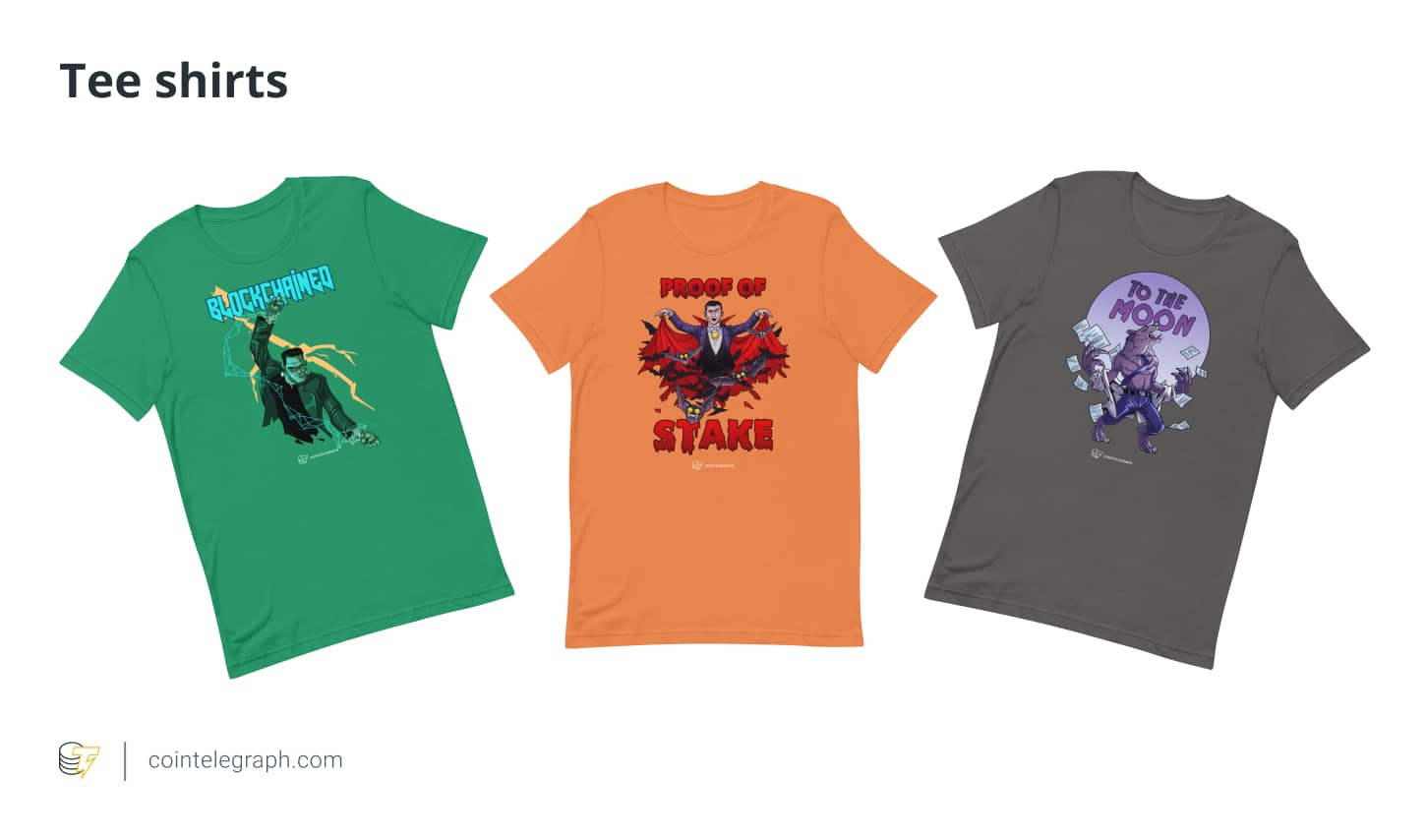 Celebrate the season with Cointelegraph’s new t-shirt designs now available in the store, featuring the Blockchained Frankenstein’s Monster Tee, To the Moon Werewolf Tee and Proof of Stake Vampire Tee. The designs are perfect for making a crypto-themed statement during your next spooky encounter.