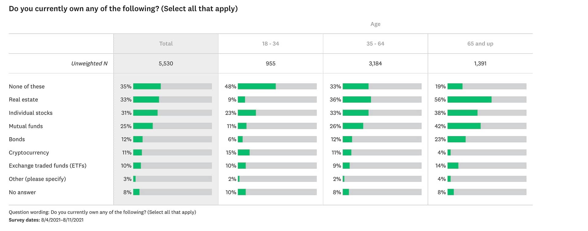 Young adults are also leading digital asset adoption. According to the “Invest in You” survey by CNBC, 18-34-year-olds accounted for 15% of cryptocurrency investments, compared to 11% for 35-64-year-olds and a measly 4% for 65+. The problem is, a considerable segment of that 18-34 year old demographic sees crypto as a short-term investment: 21% of 18-34-year-olds only regard it as a 12-month strategy.